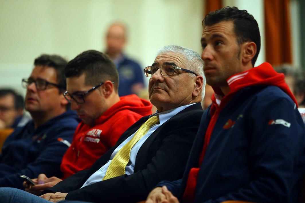 L’ospite d’onore della serata, presentata da Antonio Mannori voce e penna storica del ciclismo toscano, ovviamente è stato lui Vincenzo Nibali. Dopo aver partecipato a Strade Bianche e Larciano Lo Squalo è venuto a salutare e incoraggiare i suoi ragazzi. “Con Mastromarco ho un rapporto speciale. Questa è la mia casa, qui mi sono formato e cresciuto. Devo molto a Carlo Franceschi, Mastromarco è la mia seconda famiglia. Qui ho passato anni intesi e il mio impegno con la squadra continua, sono contento di fare parte di questo progetto. A questi ragazzi mi sento di dire di crederci, di impeganrsi e dare il massimo perché qui a Mastromarco hanno le persone e l’ambiente giusto per provare a realizzare il loro sogno di diventare professionisti” dice Vincenzo Nibali in platea accompagnato dal fratello Antonio e dallo staff dirigenziale del nuovo Baharain Merida Pro Cycling Team. Un Nibali ovviamente incalzato dalla stampa presente per sapere quali saranno i suoi progetti per Giro e/o Tour nel 2017.