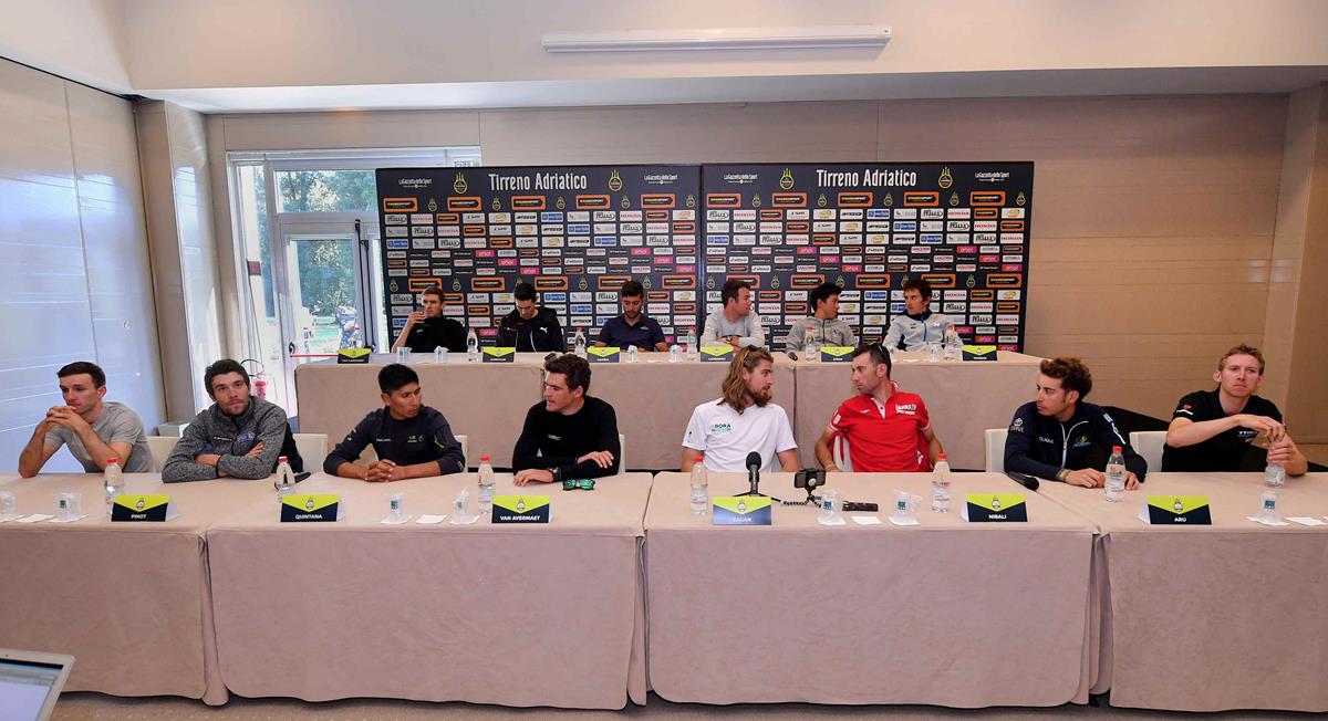 Conferenza stampa dei big della Tirreno-Adriatico 2017 (foto LaPresse – D’Alberto / Ferrari)