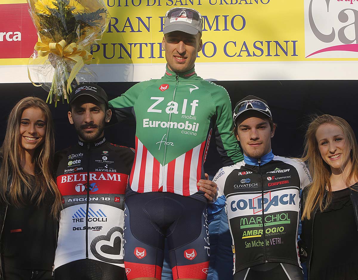 Secondo posto per Rino Gasparrini (Beltrami TSA Argon 18) e terzo Attilio Viviani (Team Colpack).
