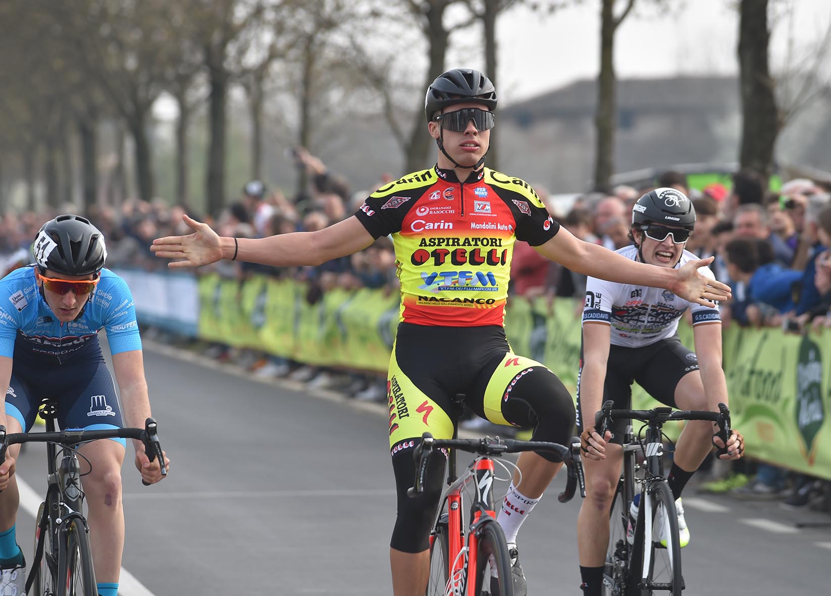 Per il più volte azzurrino dell’Aspiratori Otelli Vtfm Carin Nacanco Baiocchi Cadeo Carpaneto, il successo su strada a Montichiari fa coppia con la vittoria –a pochi metri di distanza – ottenuta al velodromo bresciano nelle Tre Sere del Garda in coppia con il compagno di squadra Luca Regalli. Squadra, quella diretta dal ds Giambattista Bardelloni, che ha brillato anche nel collettivo mostrando subito un grande affiatamento.