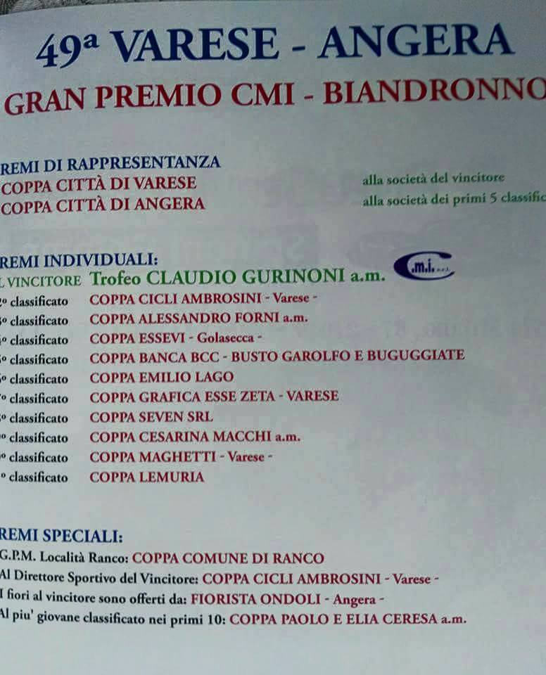 49/a Varese-Angera: domenica la prima classica per gli Allievi