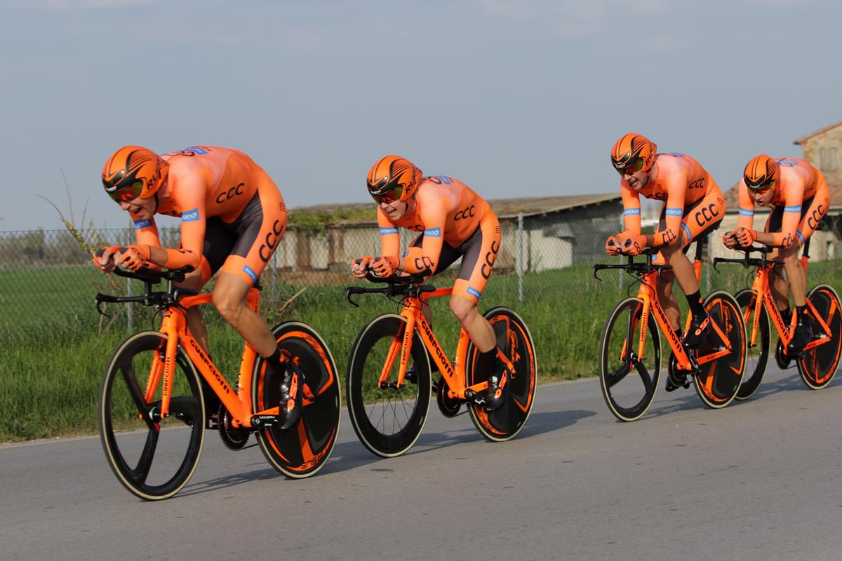 Dopo la penalizzazione inflitta dalla giuria alla Movistar, è la BMC Racing a vincere la cronosquadre della Volta a Catalunya 2017 (foto TDWSport)