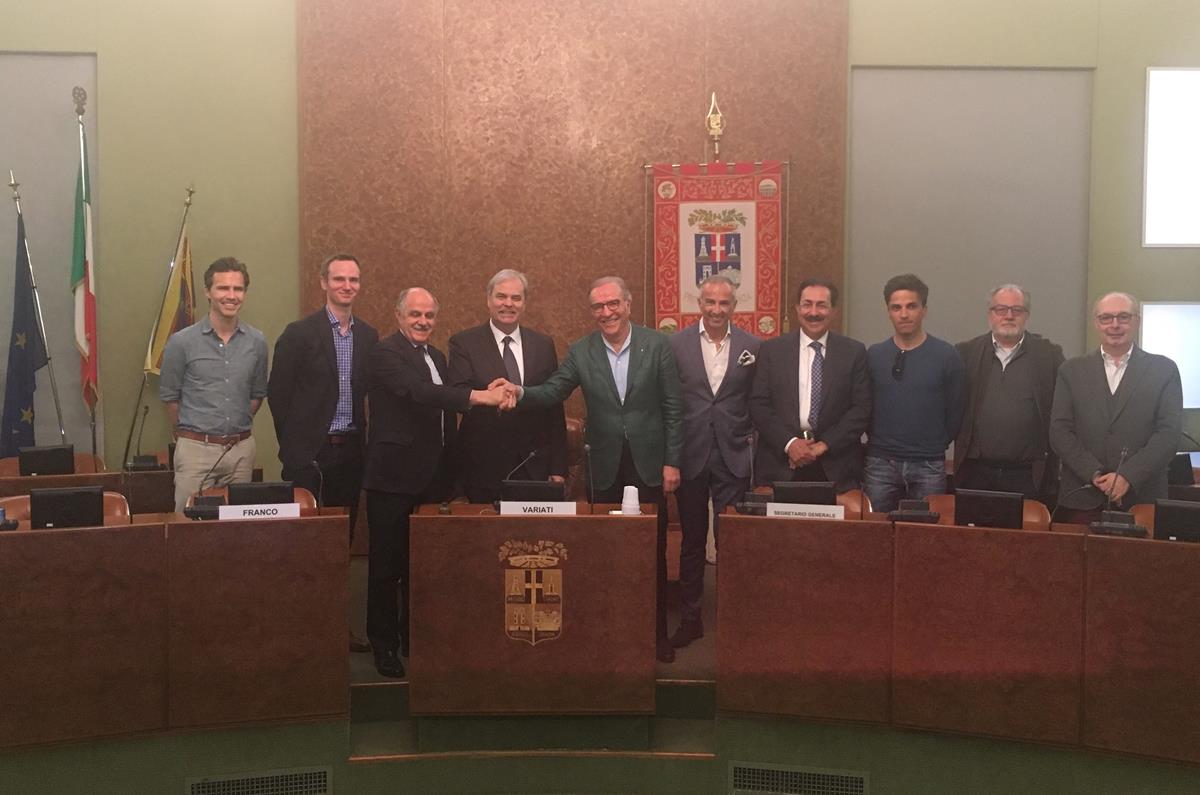 La delegazione è stata accolta presso la sede della provincia da Achille Variati, Sindaco della città e presidente della Provincia di Vicenza, accompagnato dall’assessore alla formazione Umberto Nicolai, che ha rinnovato il pieno sostegno dell’amministrazione comunale e della città al progetto e al comitato promotore.