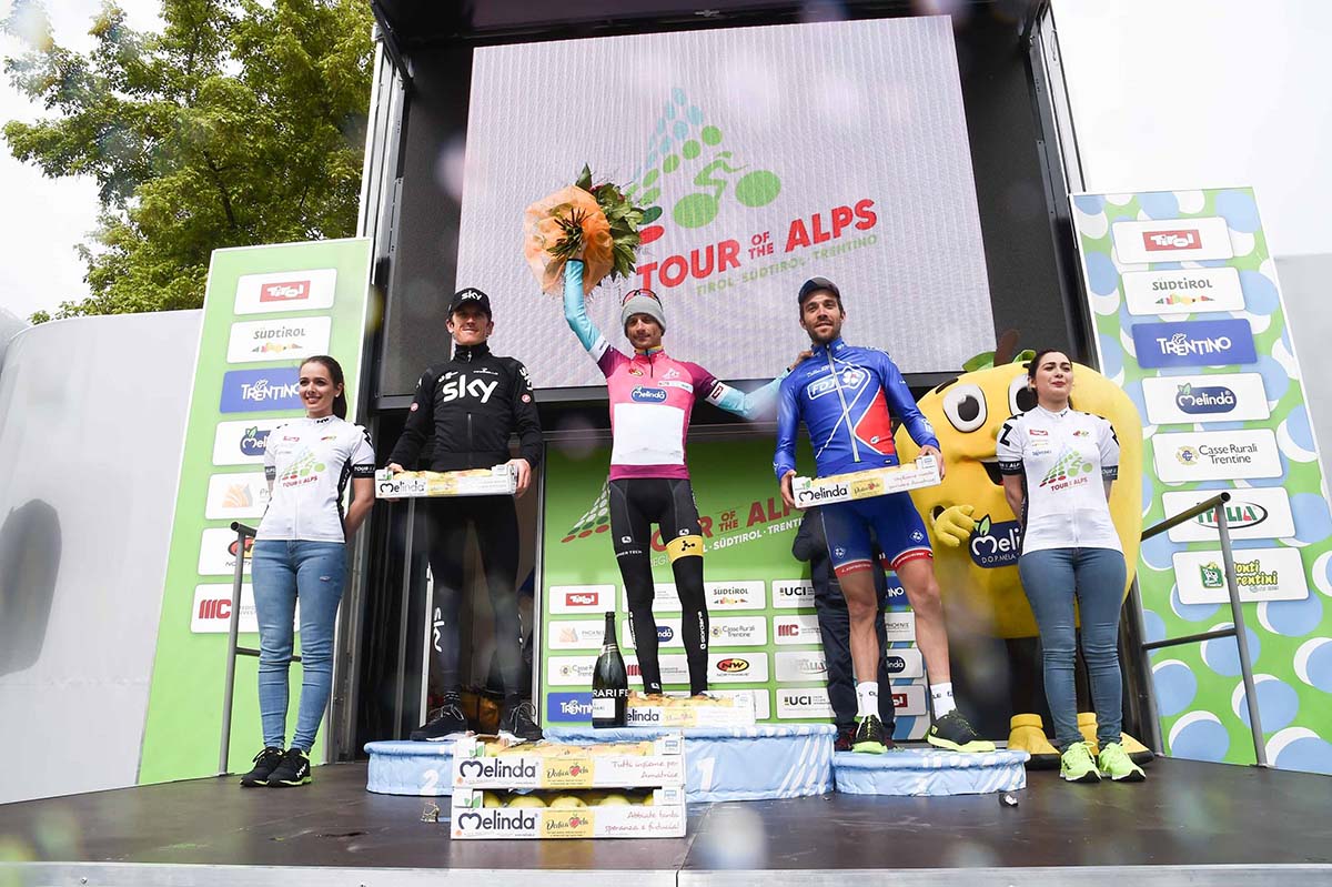 Tra i favoriti al successo del Tour of the Alps, l’australiano Rohan Dennis (Bmc) ha ceduto 11 secondi, Rolland (Cannondalle-Drapac) 17, mentre il vincitore dello scorso anno Mikel Landa (Team Sky) ha chiuso staccato di 26 secondi. Ma la situazione è quanto mai aperta: i distacchi sono ancora molto ridotti e restano ancora tutte le salite più importanti sulla strada dei corridori.