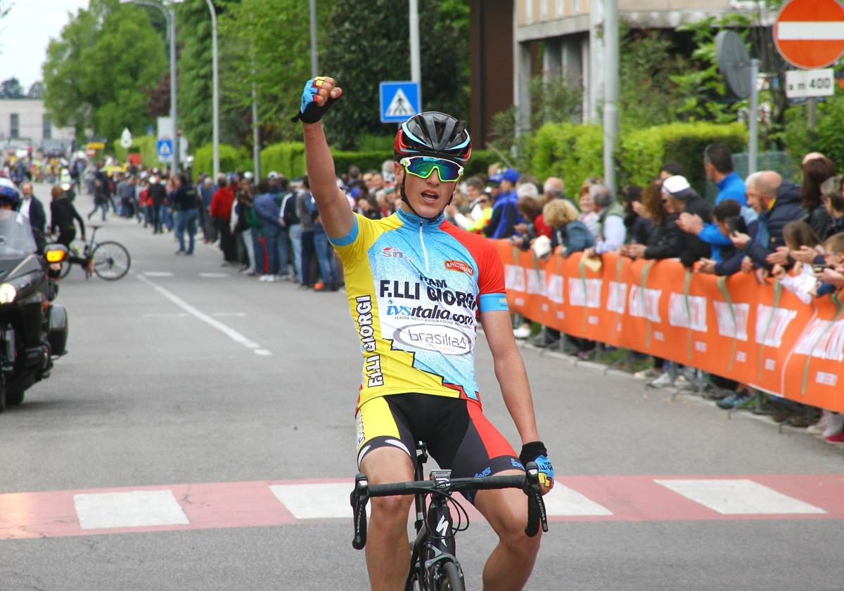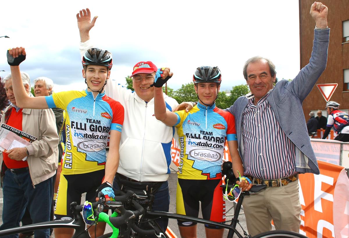 PONTE SAN PIETRO (BG) – A distanza di 24 ore dal successo di Nicola Plebani a Massa la squadra Allievi del Team F.lli Giorgi diretta da Leone Malaga festeggia una nuova vittoria. Solitaria, bella, questa volta di Alessio Martinelli, splendido mattatore del 2° Memorial Daniella – Gran Premio Trofei Sala. Completa la festa della formazione del presidente Carlo Giorgi, oggi presente sul traguardo ad applaudire i suoi ragazzi, il secondo posto di Nicola Plebani che vince la volata del gruppo davanti al varesino Christian Bagatin (Sc Orinese).