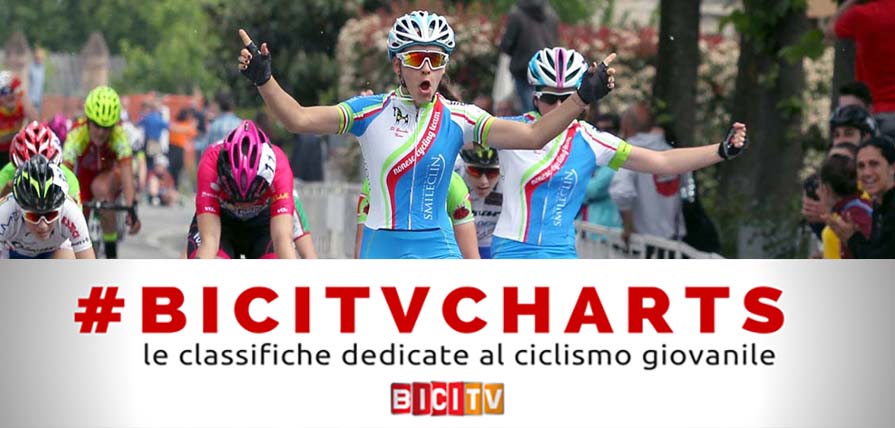 Nuovo appuntamento settimanale con le #BICITV Charts, le classifiche nazionali del ciclismo giovanile di BICITV che potete trovare sul nostro sito internet ogni giovedì. Il vincitore di ogni categoria verrà premiato durante la magica serata dei BICITV Awards 2017, l’unico evento dedicato a chi ama il ciclismo con passione sfrenata che si svolgerà a fine stagione a Nembro (Bg).