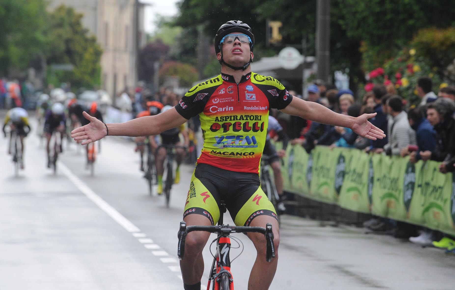 Nel lunedì festivo, Michele non ha dovuto ricorrere all’arma principale, la volata, perché è arrivata una vittoria per distacco, con quattro secondi di vantaggio su Giulio Masotto (Cipollini Assali Stefen), secondo classificato.
