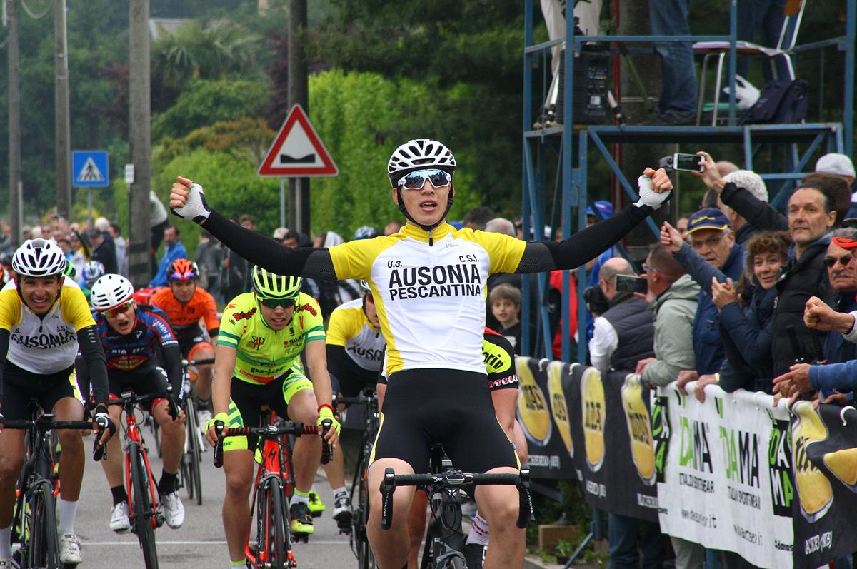 Dopo centoventitré combattuti chilometri di gara, caratterizzati tra l’altro da una lunga fuga di una dozzina di corridori poi ripresi, Coati ha battuto allo sprint Luca Regalli (Aspiratori Otelli Carin Cadeo) e Omar El Gouzi (U.S. Ausonia Pescantina).