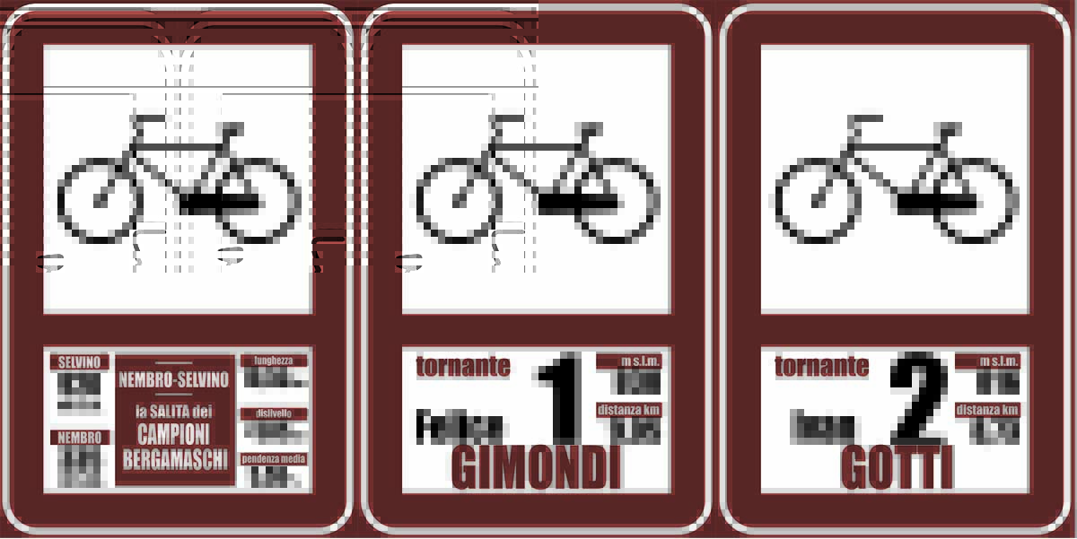 Dalle prossime settimane, per ogni tornante sarà affisso un cartello con il nome del corridore a cui il tornante stesso sarà dedicato. La grafica risponde a specifiche dettami imposti dalla Provincia di Bergamo. L’affissione sarà pronta in occasione del passaggio della tappa del Giro, ma resterà fissa nel tempo a beneficio degli appassionati e per celebrare questi grandi campioni. Inoltre, nei prossimi mesi sarà programmata una inaugurazione ufficiale con una bella festa insieme a tutti questi campioni.