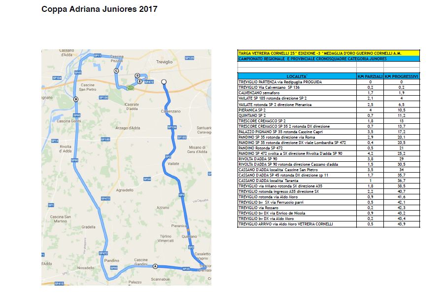 Percorso e dettagli del Campionato Lombardo Cronosquadre Allievi e Juniores 2017