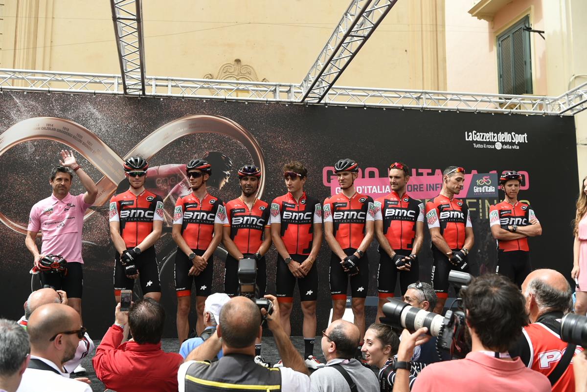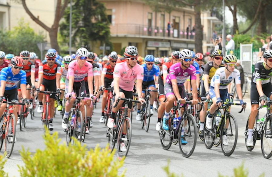L’attore americano è salito sul palco della presentazione squadre insieme alla squadra della BMC vestito con una maglia rosa vintage. Si è poi schierato davanti al gruppo al momento della partenza della Castrovillari-Alberobello al fianco della maglia rosa, quella vera, di Bob Jungels e alla maglia ciclamino Fernando Gaviria.