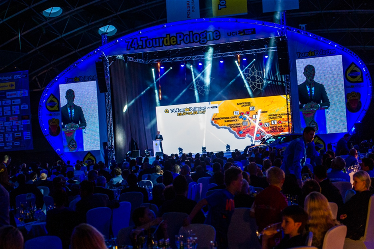 VARSAVIA (POLONIA) – Grande spettacolo per la presentazione ufficiale del Tour de Pologne – UCI World Tour. Il vernissage dell’edizione numero 74 della corsa a tappe polacca è andato in scena questa sera, con quasi 500 invitati, presso la magnifica cornice offerta dalla BGZ BNP Paribas Arena di Pruszkow, il moderno velodromo che sorge alle porte di Varsavia già sede di competizioni internazionali importanti quali i Campionati del Mondo del 2009 e i Campionati Europei del 2010, organizzati con la collaborazione del Lang Team.