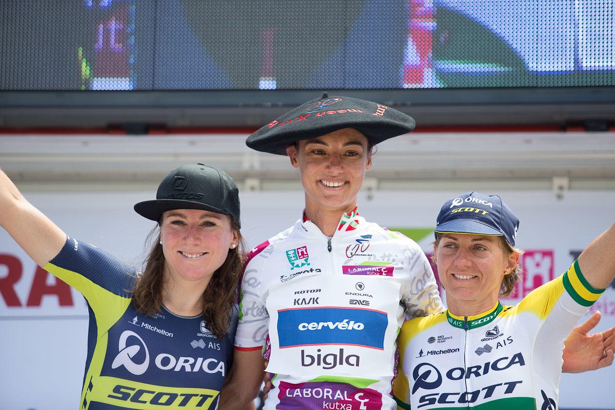 ERRENTERIA (SPAGNA) – Ribaltone nell’ultima tappa della Emakumeen XXX. Bira. Sul traguardo di Errentería la sudafricana Ashleigh Moolman (Cervélo-Bigla Pro Cycling) tende l’imboscata alle ragazze della Orica-Scott che finora avevano dominato la corsa, le stacca e va a prendersi quei secondi sufficienti per vincere anche la classifica finale.