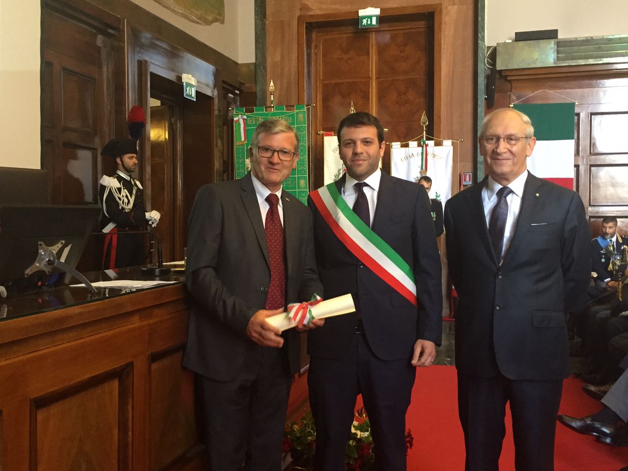 La cerimonia di consegna si è svolta stamattina nella sala Campiotti della sede della Camera di Commercio di Varese per mano del prefetto Giorgio Zanzi. Mario Minervino era accompagnato da Davide Matera, sindaco di Caravate. Minervino, infatti, è cittadino residente di Caravate: “Anche io sono felicissimo del riconoscimento al lavoro svolto da Mario Minervino; mi unisco ai complimenti rivolti al concittadino che tanto si adopera sul territorio”.