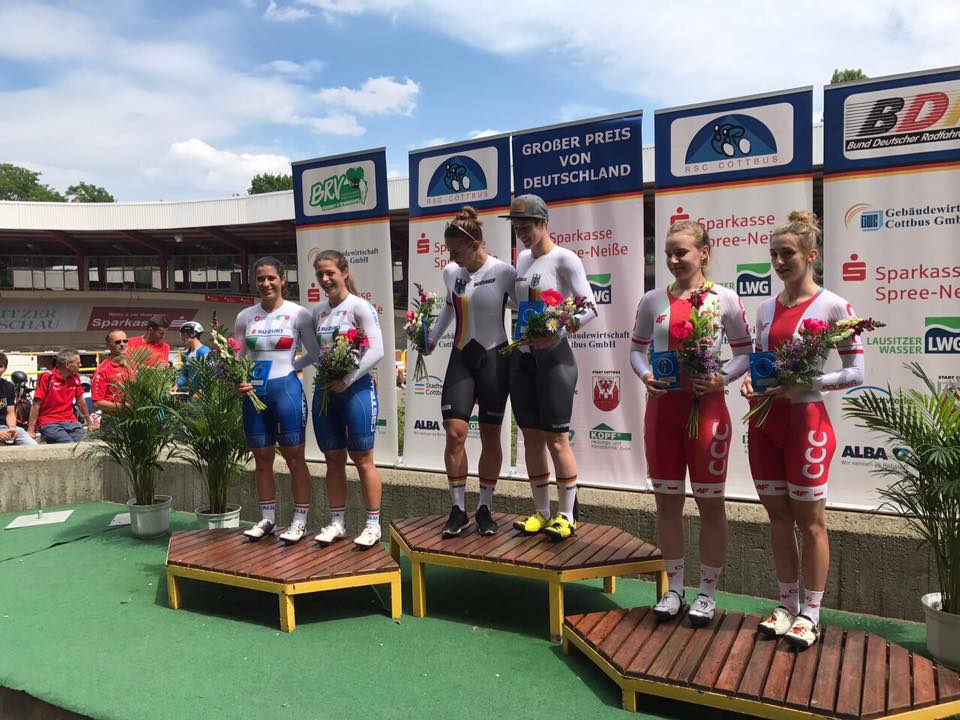 Dopo l’oro di Miriam Vece nei 500 metri della Sprint Cup, un altro risultato importante a pochi giorni di distanza gratifica la trasferta delle velociste azzurre in Germania, a conferma che il nostro movimento femminile è competitivo ad altissimi livelli non solo nelle specialità endurance (inseguimento), ma anche in quelle veloci. In questa occasione le due giovanissime azzurre, che da juniores erano già salite sul podio mondiale della specialità (bronzo ad Astana) e su quello europeo (argento ad Atene), erano diretta da Pierangelo Cristini.