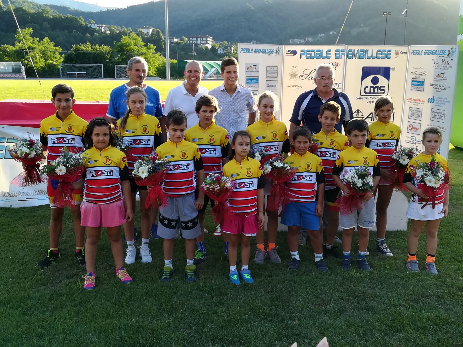 BREMBILLA (BG) – Il Pedale Brembillese ha organizzato lo scorso sabato pomeriggio il Trofeo Lupi di Brembilla – 50° di Fondazione, abbinato al 10° Trofeo Impresa Edile F.lli Locatelli, manifestazione valida per il Campionato Provinciale Bergamasco Primi Sprint maschile e femminile della categoria Giovanissimi. A premiare i ragazzi anche il vice presidente FCI Michele Gamba e il ciclista professionista Fausto Masnada entrambi ex tesserati della Brembillese.