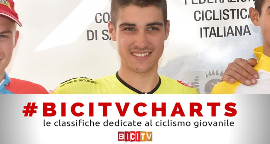 Nuovo appuntamento settimanale con le #BICITV Charts, le classifiche nazionali del ciclismo giovanile di BICITV che potete trovare sul nostro sito internet ogni giovedì. Il vincitore di ogni categoria verrà premiato durante la magica serata dei BICITV Awards 2017, l’unico evento dedicato a chi ama il ciclismo con passione sfrenata che si svolgerà a fine stagione a Nembro (Bg).