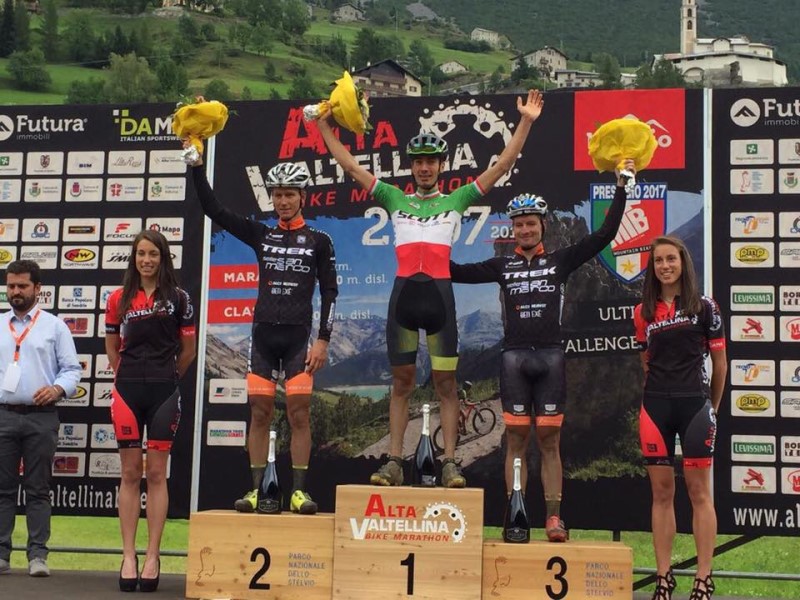 MALÈ (SO) – All’Alta Valtellina Bike Marathon si ripete il copione già visto al recente Campionato Italiano Marathon: vittoria del tricolore Juri Ragnoli (Scott Racing Team) che si lascia alle spalle la coppia della Trek-Selle San Marco con Samuele Porro secondo a 1’12” e Fabian Rabensteiner terzo a 2’57”.