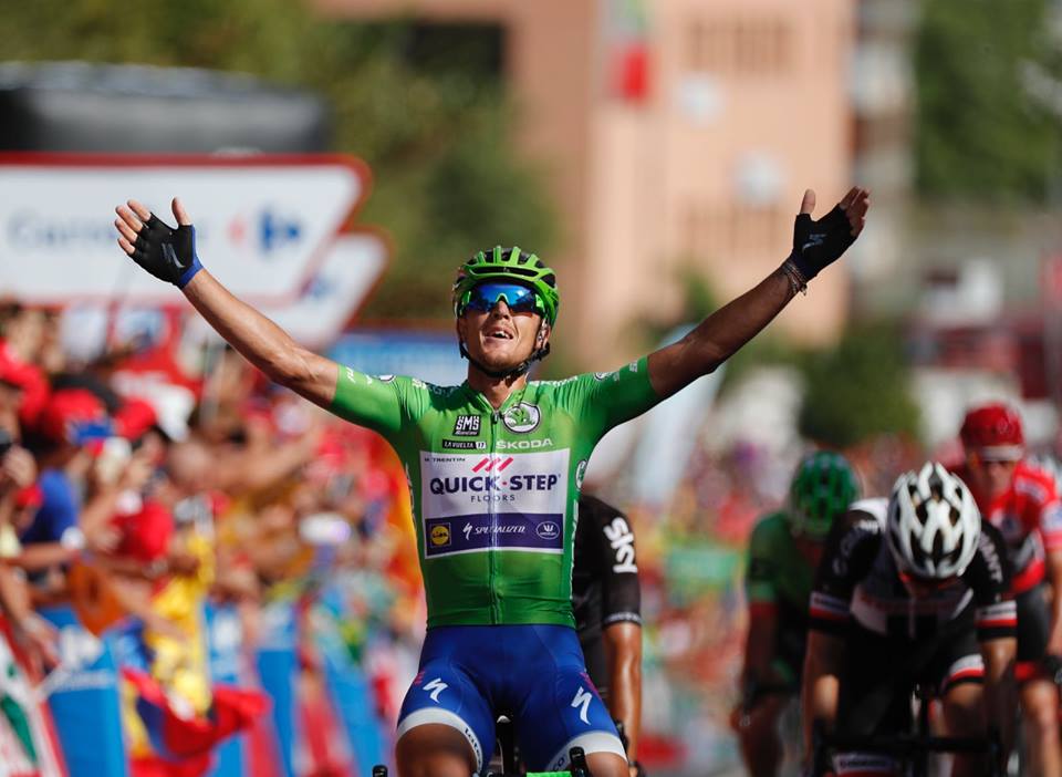 Il trentino della Quick-Step Floors si è imposto con autorità e sicurezza allo sprint sul traguardo di Tomares, lasciandosi alle spalle un’altro italiano, un altro trentino, il giovane Gianni Moscon (Team Sky) anche lui grande protagonista in questa Vuelta. Terzo posto per il danese Søren Kragh Andersen (Team Sunweb).