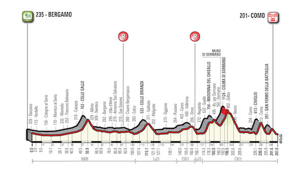 Un percorso molto selettivo con 6 salite e 4.000 metri di dislivello a partire dal Colle Gallo seguito dal Colle Brianza; dopo Onno si affronta prima la salita della Madonna del Ghisallo e subito dopo il durissimo Muro di Sormano. Superata la Colma di Sormano si scende a Nesso per proseguire fino all’ingresso di Como dove verranno affrontate le ultime due asperità. Civiglio e San Fermo della Battaglia faranno da trampolino di lancio finale verso il traguardo posto sul Lungo Lario Trento e Trieste di Como.