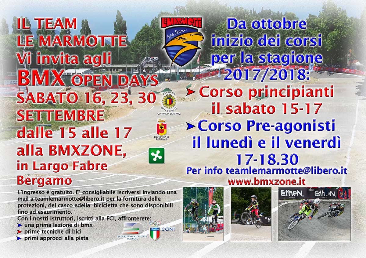BERGAMO (BG) – Sarà un mese di settembre dedicato agli Open Day quello messo in cantiere dal Team Le Mormotte Loreto che ha previsto per i prossimi tre sabati 16-23 e 30 settembre degli incontri con ingresso gratuito dedicati a chi vuole cimentarsi con le specialità del BMX e della MTB.