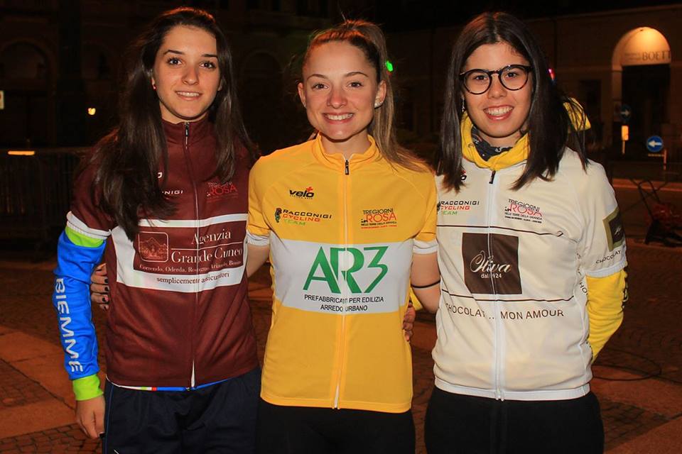 CUNEO (CN) – L’esordiente Sara Fiorin della Gs Cicli Fiorin, l’allieva Eleonora Gasparrini della Nonese Cycling Team e la juniores Martina Fidanza della Eurotarget Still Bike hanno vinto nelle loro rispettive categorie il Trofeo Città di Cuneo. La seconda prova della Tre Giorni in Rosa nelle Terre della Granda era una prova a cronometro individuale di un chilometro e mezzo nel cuore della città di Cuneo con partenza e arrivo in piazza Galimberti.