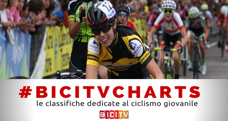 Nuovo appuntamento settimanale con le #BICITV Charts, le classifiche nazionali del ciclismo giovanile di BICITV che potete trovare ogni giovedì sul nostro sito internet. Il vincitore di ogni categoria verrà premiato durante la magica serata dei BICITV Awards 2017, l’unico evento dedicato a chi ama il ciclismo con passione sfrenata che si svolgerà sabato 18 novembre a Nembro (Bg).