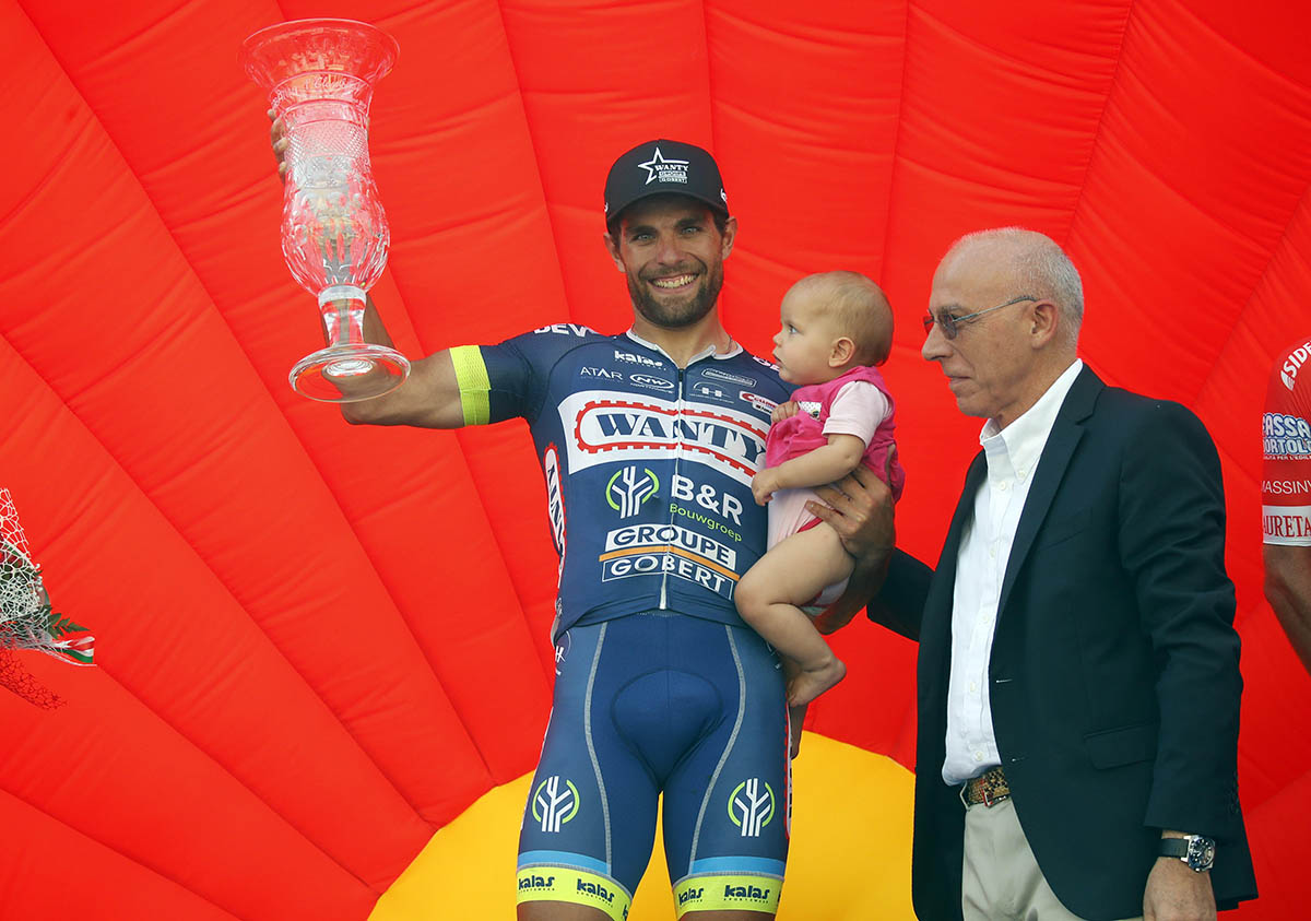 Colbrelli ha contestato la vittoria per una presunta scorrettezza in volata, ma la giuria alla fine ha confermato la vittoria di Pasqualon. Il secondo successo consecutivo della Wanty, dopo quello di Martin ieri a Volterra, consegna anche la vittoria finale nella challenge Memorial Alfredo Martini a Pasqualon. Quarta affermazione tra i professionisti per il 29enne di Bassano del Grappa, originario di Enego con un passato da sciatore, che sul palco ha festeggiato con in braccio la piccola figlia Joyel presente a Peccioli anche con mamma Tanja.