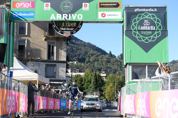 COMO (CO) – Dopo la bellissima vittoria di Vincenzo Nibali a Il Lombardia, oggi 1.400 amatori si sono cimentati nella Gran Fondo Il Lombardia, sulle strade dove i professionisti hanno dato spettacolo nella Classica delle foglie morte di ieri.