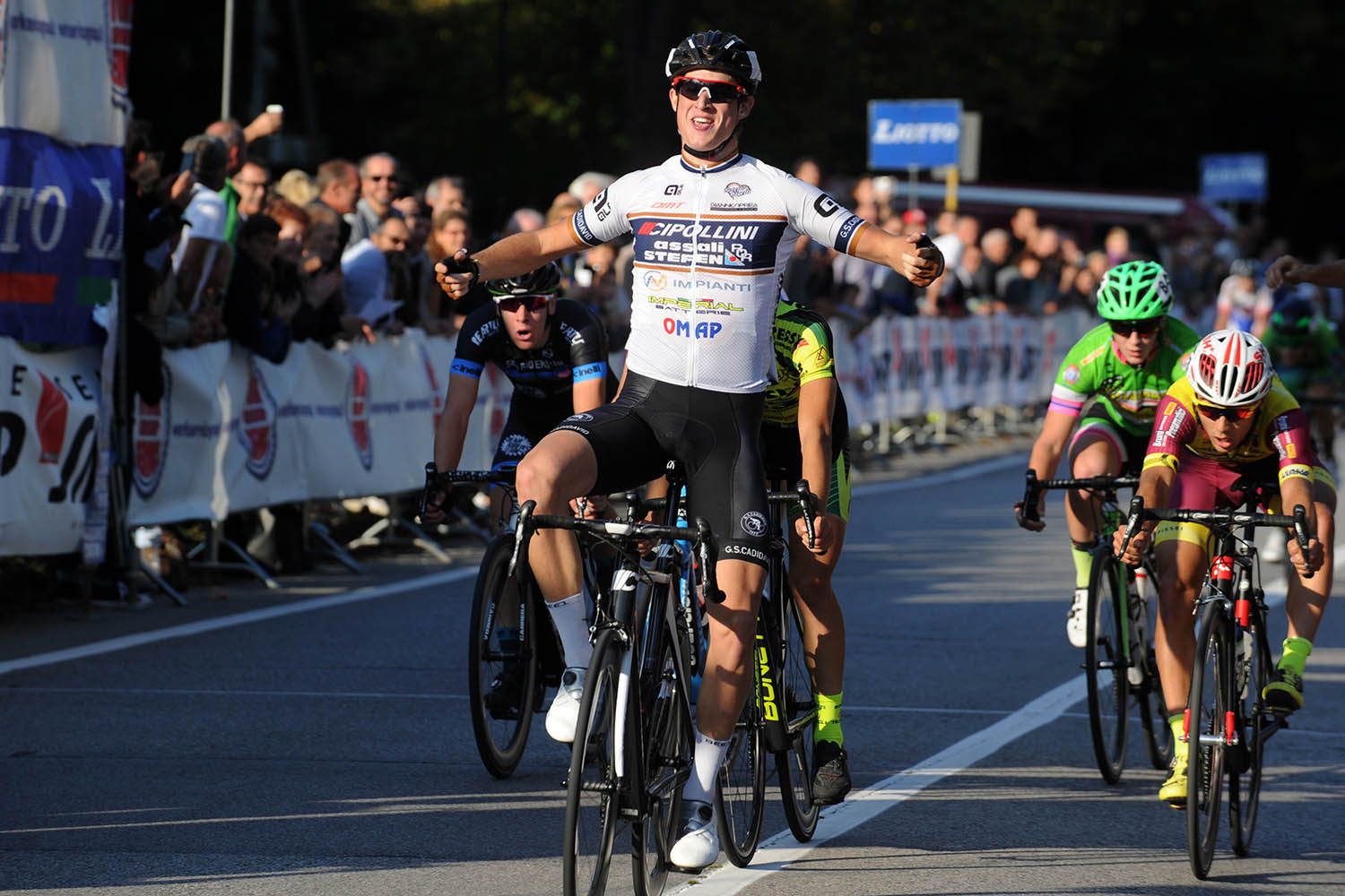 Sul circuito padovano i ragazzi diretti dall’ex professionista Nicola Minali hanno offerto l’ennesima ottima prestazione riuscendo a controllare tutte le azioni di giornata dove sono stati bravi ad inserirsi Sebastiano Mantovani e Giulio Masotto. Nel finale di gara il gruppo è tornato compatto e le maglie bianche della Cipollini Assali Stefen hanno saputo pilotare perfettamente la volata a Michael Minali che si è imposto nettamente sugli avversari relegando al secondo posto Lorenzo Giopp (Pressix P3 Mito Sport) e al terzo Simone Buda (Italia Nuova). Al quarto posto ha chiuso poi Giulio Masotto, completando così la festa per il team del presidente Alberto Murari.