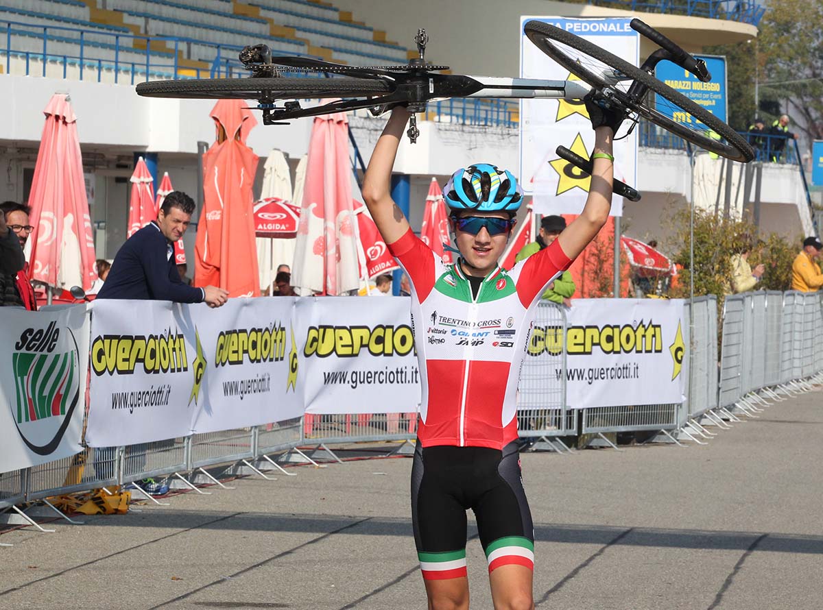 JUNIORES – Partiva con il numero uno sulla schiena e tutti i favori del pronostico e il campione italiano di ciclocross della categoria Juniores Filippo Fontana non ha tradito le attese. Il veneto della Trentino Cross-Giant-Selle Smp all’Idroscalo ha fatto praticamente gara a sé fin dall’inizio. Ha preso il largo e col passare dei giri è andato ad incrementare il suo vantaggio sino ad arrivare solo e a braccia alzate al traguardo. Una vittoria applaudita anche dal CT della Nazionale italiana Fausto Scotti che proprio con Fontana punterà ad una prestazione importante il prossimo fine settimana al Campionato Europeo di Tabor, in Repubblica Ceca. Secondo posto per l’ottimo Tommaso Dalla Valle (KTM Alchemist Selle SMP Dama), staccato di 36”, e che nel finale è riuscito ad allungare nei confronti dell’olandese Milan Ziemerink (Zwiep Offroad Team) che ha concluso in terza posizione con 40” di ritardo da Fontana.