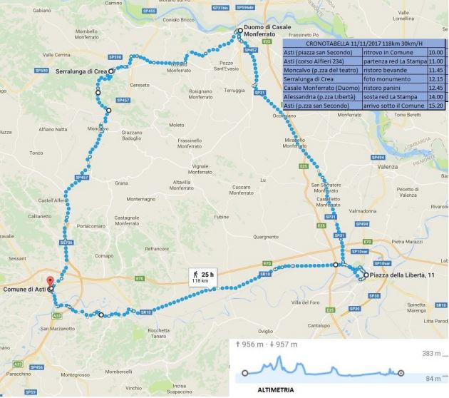 SABATO 11 NOVEMBRE 2017: Asti – Moncalvo – Casale Monferrato – Alessandria – Asti
