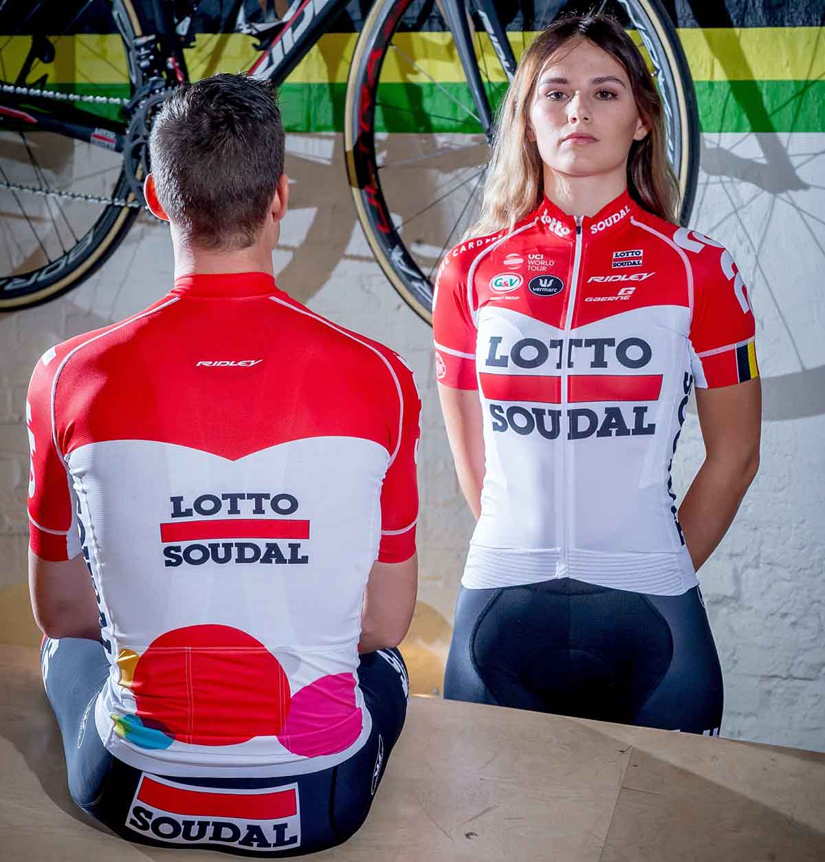 BRUXELLES (BELGIO) – La Lotto Soudal ha presentato oggi la sua nuova maglia per la stagione 2018 che, a parte alcuni dettagli, è del tutto simile a quella dell’ultimo anno. Il bianco (che conquista ancora maggiore spazio) e il rosso restano i colori dominanti.