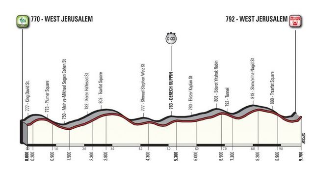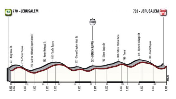 Nel presentare il percorso di gara è stato utilizzato materiale tecnico contenente la dicitura “Gerusalemme Ovest”, imputabile al fatto che la corsa si svilupperà logisticamente in quell’area della città.