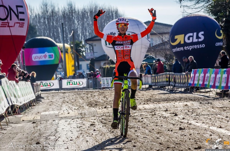 SILVELLE DI TREBASELEGHE (PD) – Ancora loro, Gioele Bertolini ed Eva Lechner, primi sul traguardo di Silvelle a undici mesi di distanza dai Campionati Nazionali del Gennaio scorso. Gli arrivi in solitaria del 22enne lombardo e della 32enne altoatesina nelle gare Open di “Armando, Giorgio & Friends“ hanno regalato una bella Domenica al ciclocross italiano, che nella culla della sua tradizione ha richiamato il pubblico delle grandi occasioni, accorso numeroso in una giornata soleggiata per la prova di Giro d’Italia Ciclocross (foto Luca Mazzarato).