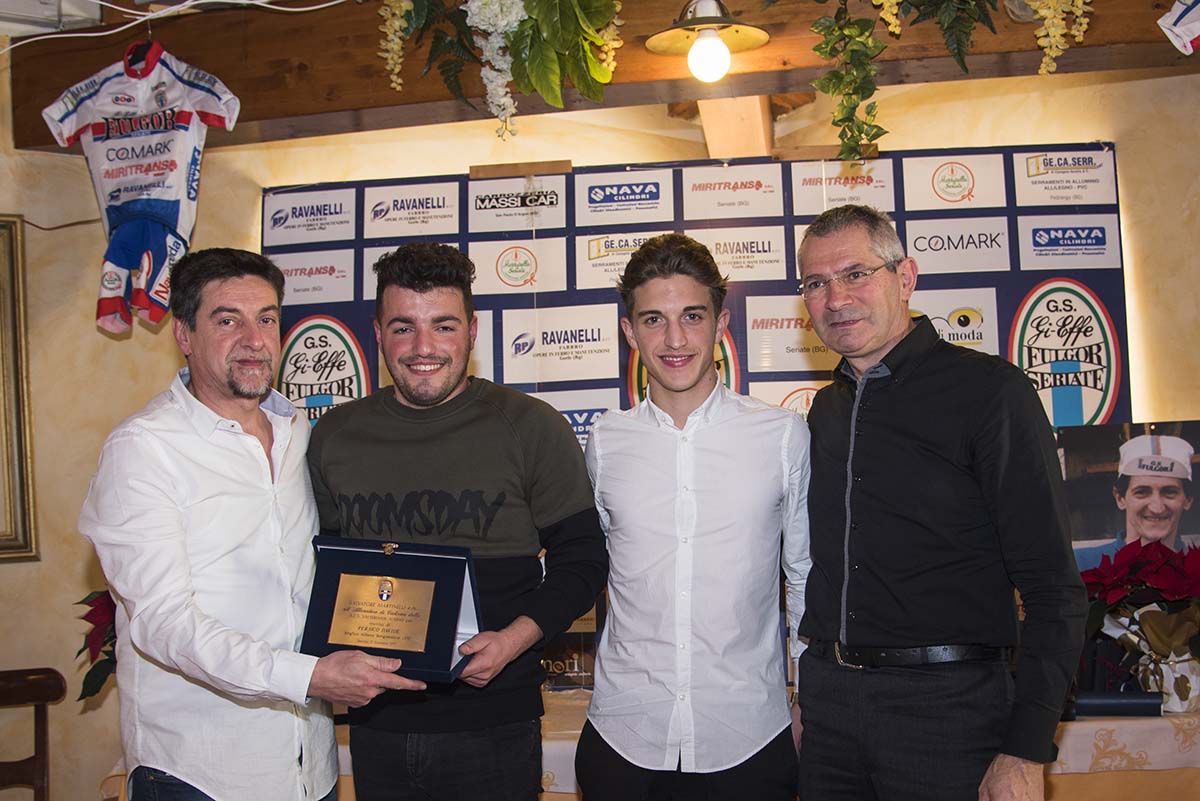 SERIATE (BG) – Durante il pranzo sociale della Gi-Effe Fulgor Seriate è stato consegnato anche il Premio “36° Memorial Bepi e Roby Donati a.m.” che per il secondo anno consecutivo è finito nelle mani di Davide Persico della Pol. Valseriana Albino, quale miglior allievo italiano, su strada, tesserato per una squadra bergamasca in gare disputate, nel 2017 nella provincia di Bergamo. Il suo allenatore, Andrea Barbetta, ha ricevuto la Targa “Salvatore Martinelli a.m.”.
