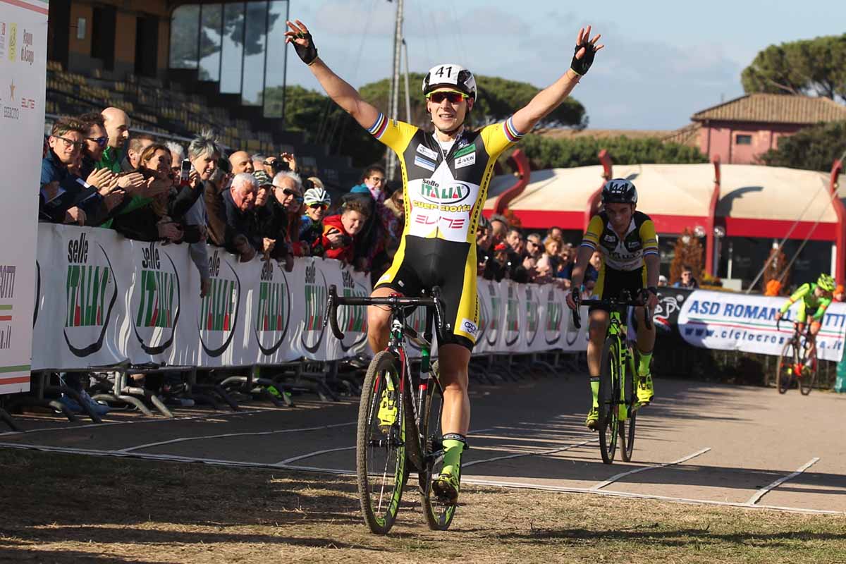 ROMA (RM) – Come un anno fa a Silvelle di Trebaseleghe, anche oggi a Roma il bolzanino Jakob Dorigoni è salito sul gradino più alto del podio del Campionato Italiano di ciclocross per la categoria Under 23. Doppietta per la Selle Italia Guerciotti Elite che ha piazzato in seconda posizione anche Stefano Sala, mentre la medaglia di bronzo è finita al collo di Daniel Smarzaro (Team Lapierre Trentino).
