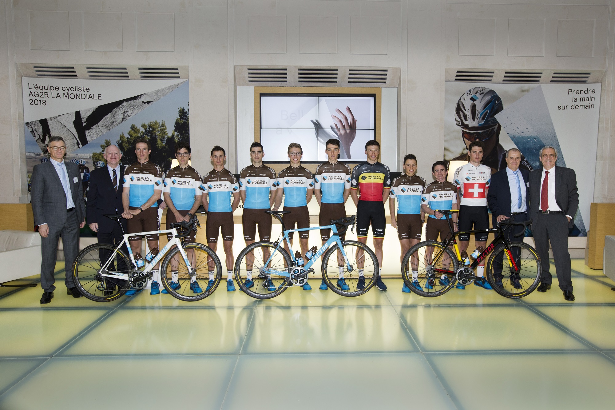 Nel 2017 sono stati festeggiati i 20 anni di parnership con l’AG2R La Mondiale che continua il proprio impegno nel mondo del ciclismo. Gli atleti indosseranno i caschi Ekoi per il settimo anno. Bollé fornirà gli occhiali per la quarta stagione. Factor per il secondo anno sarà il fornitore di biciclette. La grande novità è rappresentata dal marchio italiano Rosti che ha prodotto la nuova maglia.