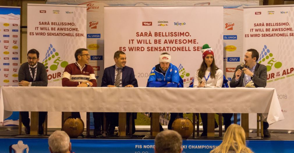 Presso il Media Center della prova di Coppa del Mondo di Combinata Nordica in corso a Seefeld, il General Manager del Tour of the Alps Maurizio Evangelista ha presentato le venti squadre che promettono di infiammare il pubblico nelle cinque impegnative tappe che porteranno gli atleti dal via di Arco fino al gran finale sul circuito che assegnerà il prossimo Mondiale ad Innsbruck, attraverso Trentino, Alto Adige e Tirolo.