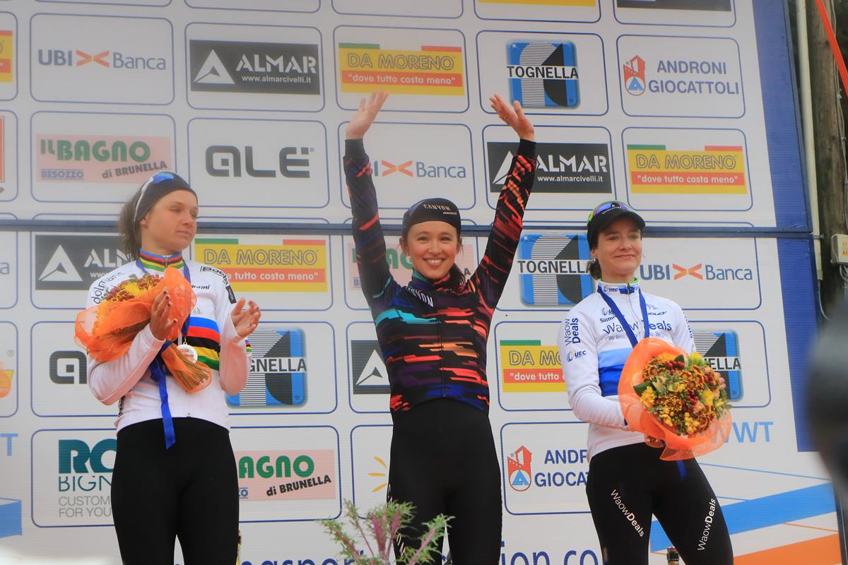 La Niewiadoma non smette di pedalare a testa bassa sino a pochissimi metri dal traguardo, quando finalmente alza le braccia e libera tutta la gioia accompagnandola con un pianto sincero che suscita l’applauso spontaneo del pubblico. Per lei questa vittoria ha un significato speciale: oltre ad essere la più importante della carriera sino ad oggi il successo al Binda consente a Katarzyna Niewiadoma di vestire la maglia di leader del World Tour. La trevigiana Sofia Bertizzolo (Astana Women’s Team) si conferma prima nella classifica delle giovani.