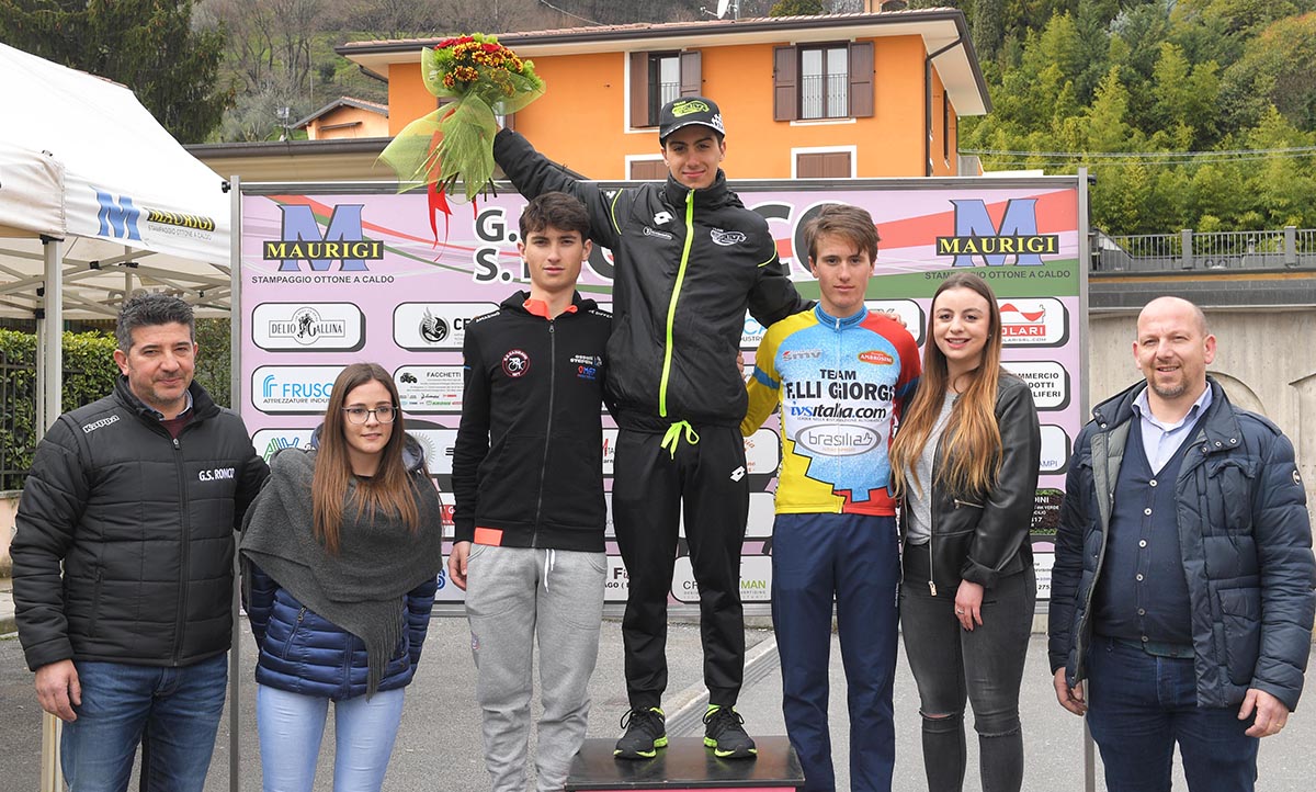 GUSSAGO (BS) – Il piemontese Samuele Rubino del Team LVF coglie il primo successo della stagione e lo fa alla sua maniera, con uno splendido assolo finale sulla salita della Santissima a Gussago (Brescia), dove oggi gli Juniores si sono misurati nel 44° Trofeo Comune di Gussago. Il pupillo del presidente Patrizio Lussana ha confermato le sue ottime doti da scalatore e ha staccato il veronese Samuele Carpene (Assali Stefen Omap), secondo a 18″, e ai giovani primo anno Alessio Martinelli e Nicola Plebani del Team F.lli Giorgi, rispettivamente terzo e quarto classifcati a 40″ e 48″.