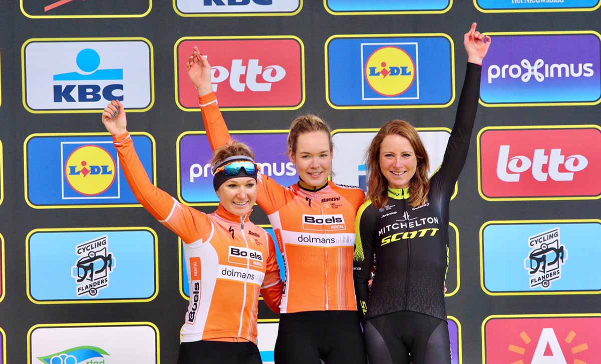Il podio del Giro delle Fiandre femminile (foto Photobicicailotto)