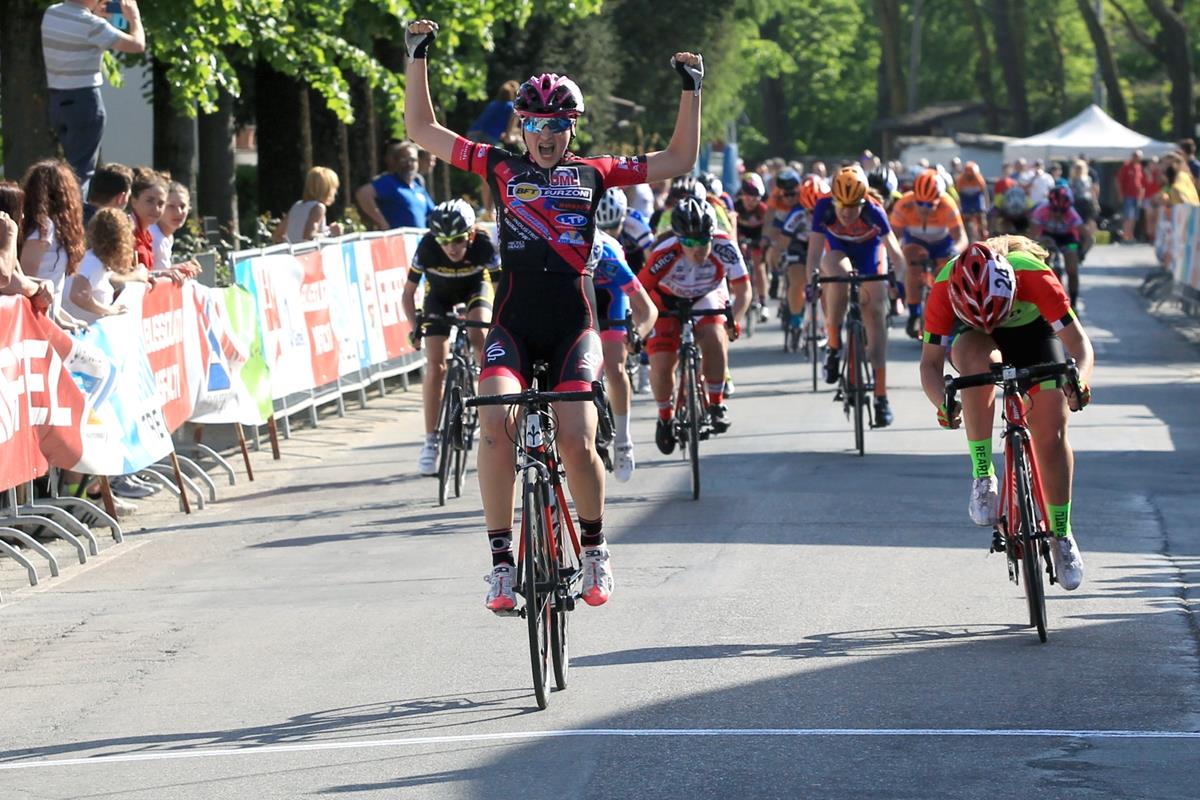 La reazione del gruppo è però pronta e in poche centinaia di metri il tandem di testa viene riassorbito. Il ritmo aumenta, ma il gruppo resta compatto fino al traguardo. Dall’ultima curva le concorrenti escono velocissime. In testa Giulia Raimondi (VO2 Team Pink) lancia e controlla lo sprint che la porta a bissare il successo ottenuto nel 2017 tra le esordienti primo anno. Piazza d’onore per Gaia Bolognesi (Re Artù Factory Team) e terza posizione per la campionessa italiana di ciclocross Eleonora Ciabocco (Team Di Federico Pink).