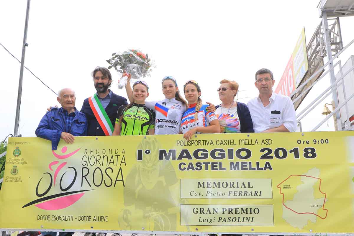 CASTEL MELLA (BS) – Giulia Raimondi (VO2 Team Pink) nella categoria esordienti ed Eleonora Gasparrini (Rodman Pink Power by Nonese) nella categoria allieve sono le vincitrici della 2° Giornata Rosa Castel Mella – Memorial Cav. Pietro Ferrari – G.P. Pasolini che si è disputata nel giorno della Festa dei lavoratori a Castel Mella (Brescia) con l’organizzazione della Polisportiva Castel Mella coordinata magistralmente da Maurizio Ferrari. Entrambe le gare si sono concluse con un epilogo a ranghi compatti, nonostante numerosi tentativi di attacco che si sono rivelati vani.