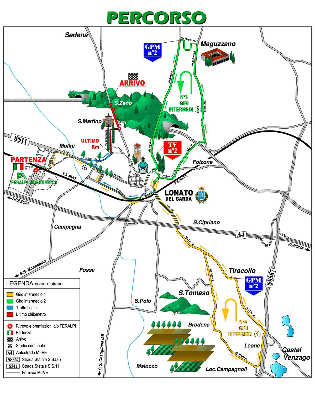 Descrizione: IL PERCORSO è UN OTTO DA RIPETERSI 3 VOLTE CON DUE ASCESE (TIRACOLLO E BARCUZZI). AL TERMINE DEL TERZO GIRO SI RITORNA ALL’ASCESA DEL TIRACOLLO E POI ALL’ARRIVO PASSANDO DAD VIA MONTEBELLO, VIA SANTUARIO E VIA SAN ZENO DOVE è POSTO L’ARRIVO.