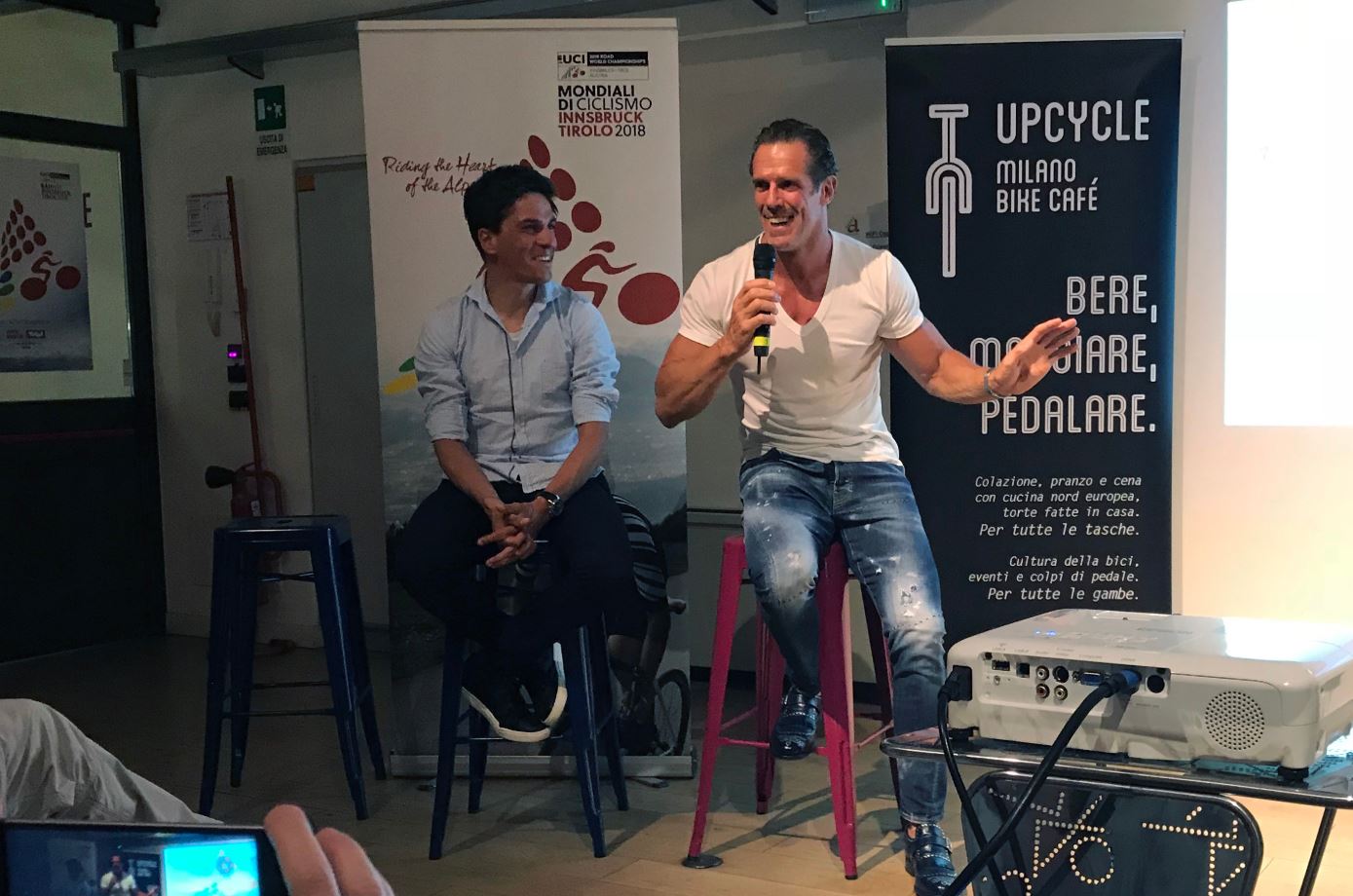 Una sfida mondiale attende in Tirolo i ciclisti dal grande Cuore, proprio come il Re Leone, che ieri sera ad Upcycle Bike Cafè ha raccontato con emozione il Suo Ciclismo e la Sua esperienza vittoriosa ai Mondiali di Zolder nel 2002: “durante quello sprint a pochi metri dal traguardo ho visto solo il buio e quel bambino che a 6 anni correva, correva e correva…”