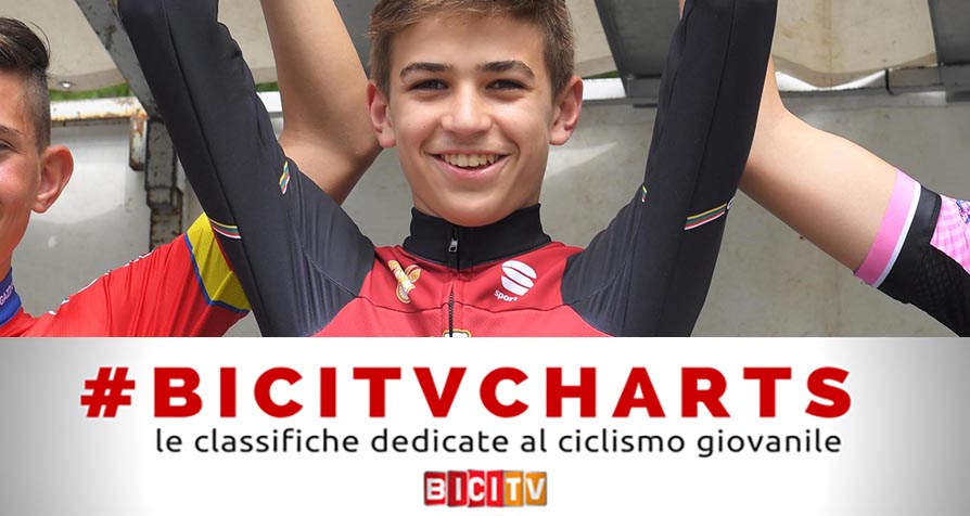 Nuovo appuntamento settimanale con le #BICITV Charts, le classifiche nazionali del ciclismo giovanile di BICITV che potete trovare ogni giovedì sul nostro sito internet. Il vincitore di ogni categoria verrà premiato durante la magica serata dei BICITV Awards 2018, l’unico evento dedicato a chi ama il ciclismo con passione sfrenata che si svolgerà a fine stagione a Nembro (Bg).