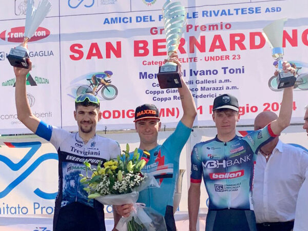 Vittoria per distacco con il corridore della formazione brianzola che ha anticipato di 5″ l’emiliano Elia Ori (Uc Sozzigalli) ed il cremasco Manuel Mosconi (Pol. Madignanese). A 7 secondi quarto posto per Daniel Vitale che festeggia la sua prima vittoria tra gli Esordienti 1° anno regalando il doppio successo alla Sco Cavenago.