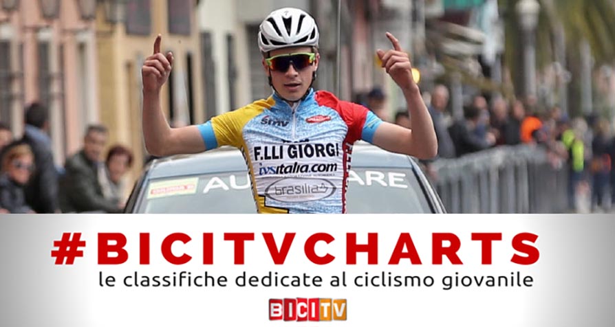 Nuovo appuntamento settimanale con le #BICITV Charts, le classifiche nazionali del ciclismo giovanile di BICITV che potete trovare ogni giovedì sul nostro sito internet. Il vincitore di ogni categoria verrà premiato durante la magica serata dei BICITV Awards 2018, l’unico evento dedicato a chi ama il ciclismo con passione sfrenata che si svolgerà sabato 17 novembre a Nembro (Bg).