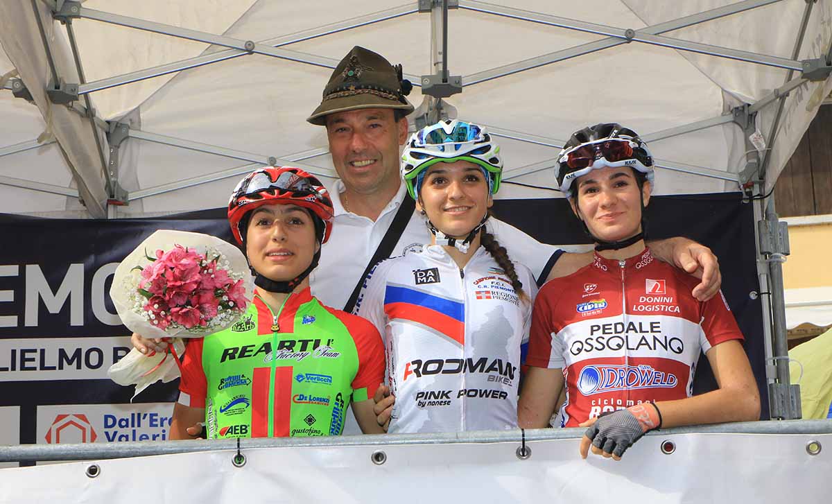 La plurivittoriosa tra le allieve in questo 2018 aggredisce l’ultimo gpm (e vince la classifica a punti speciale finale) e, sull’abbrivio, stacca tutte nella volata per la vittoria. Alessia Patuelli (Re Artù Factory Team) può solo sprintare per la piazza d’onore davanti a Francesca Barale (Pedale Ossolano), mentre Cristina Tonetti, quarta al traguardo, si aggiudica il titolo regionale su strada e firma una prestigiosa doppietta dopo il titolo lombardo a cronometro vinto a Romanengo.